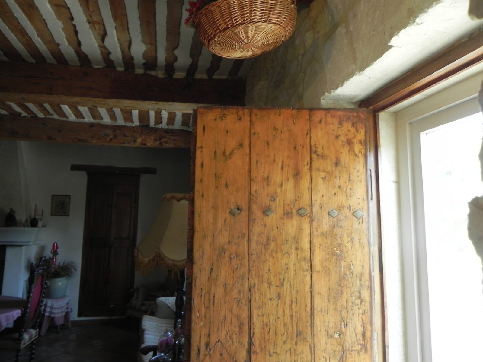 VASTE SALON et SALLE à MANGER, CHEMINEE pierre, plafonds provençaux d'origine, murs pierre, sols terre cuite. CUISINE équipée.