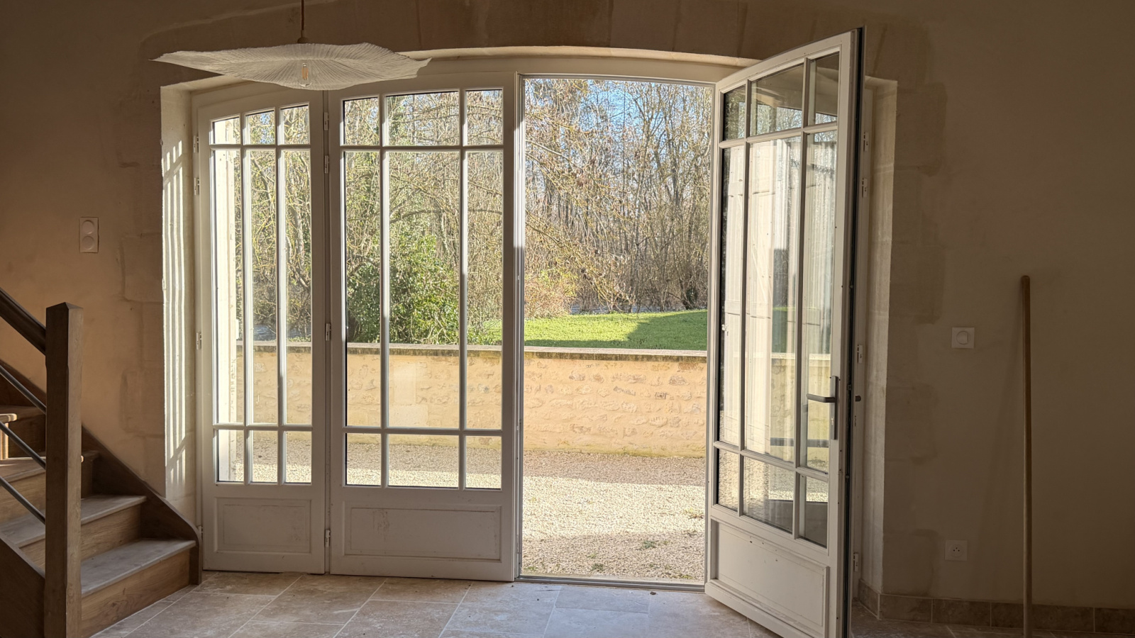 Menuiseries haute qualité , travertin aux sols des pièces de vie, parquets impeccables à l'étage et ... chauffage au sol.