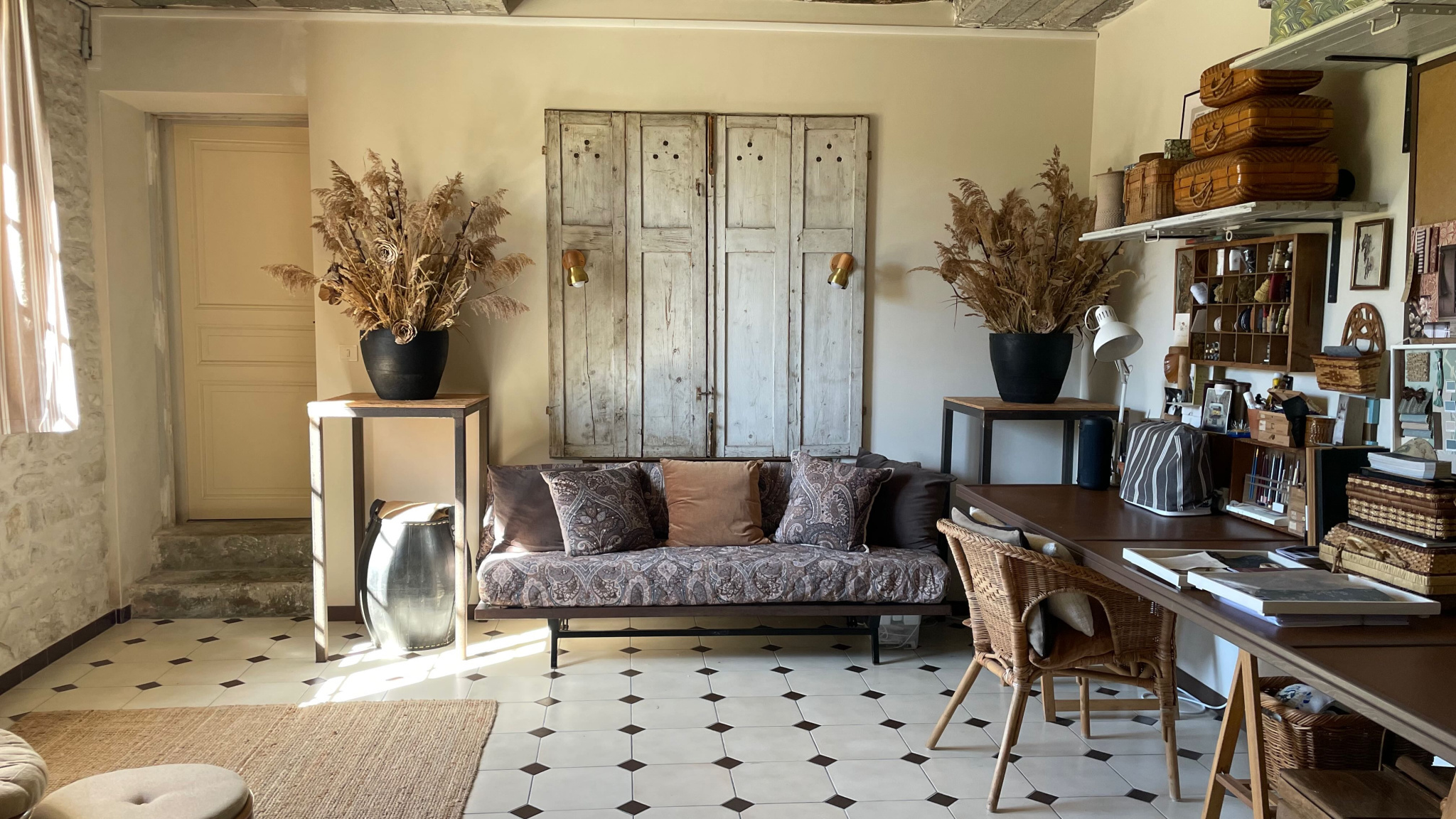 L'intérieur, magnifiquement rénové, a conservé les éléments d'époque.