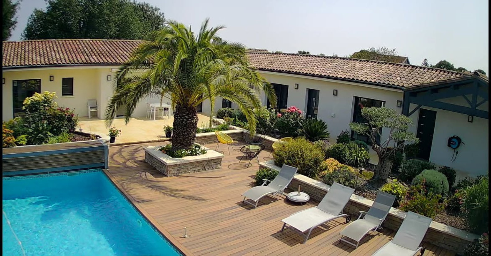 A PROXIMITE DE LA ROCHELLE, DANS UN ENVIRONNEMENT CALME, SUPERBE MAISON CONTEMPORAINE RECENTE DE STYLE RETHAIS DE 240 M2 ET SES ANNEXES SUR UN TRES BEAU TERRAIN CLOS ET ARBORE DE 1638 M2.