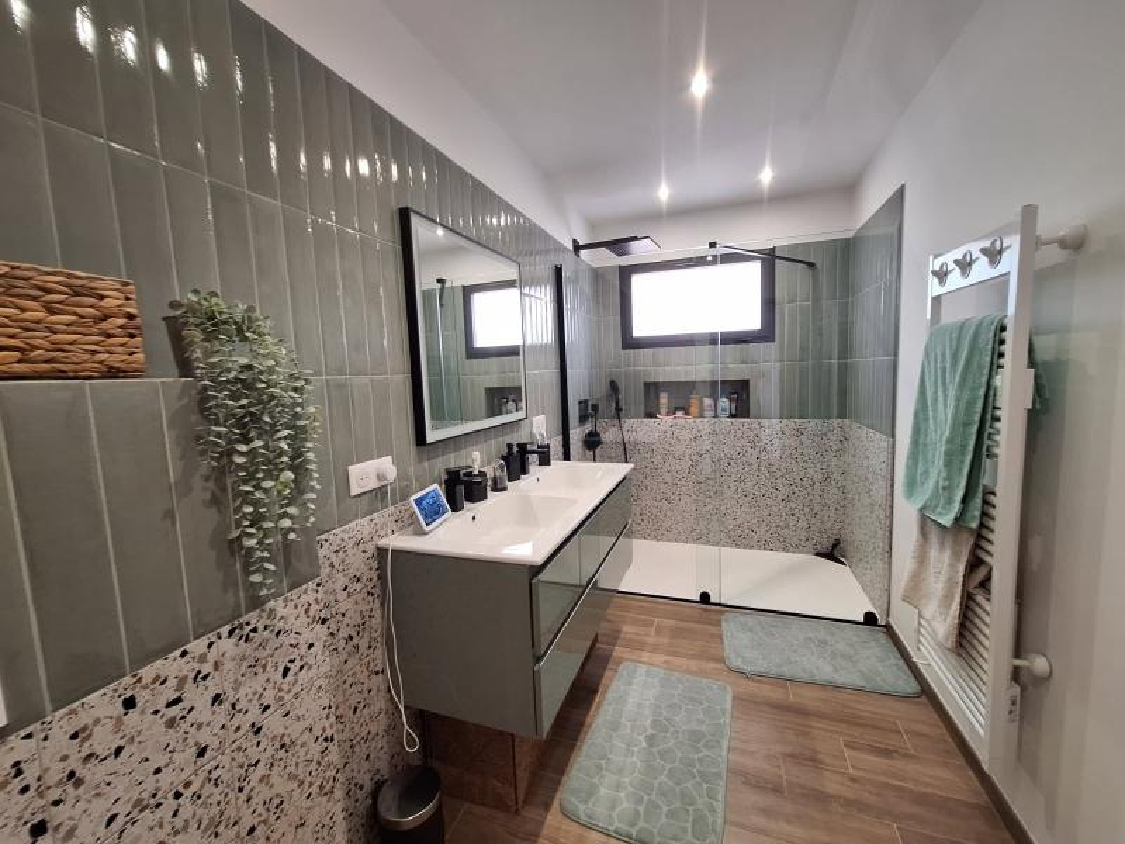 la villa se compose d'une pièce de vie de 50m² environ avec cuisine us équipée, d'une suite parentale avec salle d'eau, wc séparé, en rez de jardin se trouve 2 chambres avec terrasse et une salle d'eau avec wc, rideaux électriques, caméra surveillance, clims intégrées, garage climatisé, portail motorisé, complète ce bien.