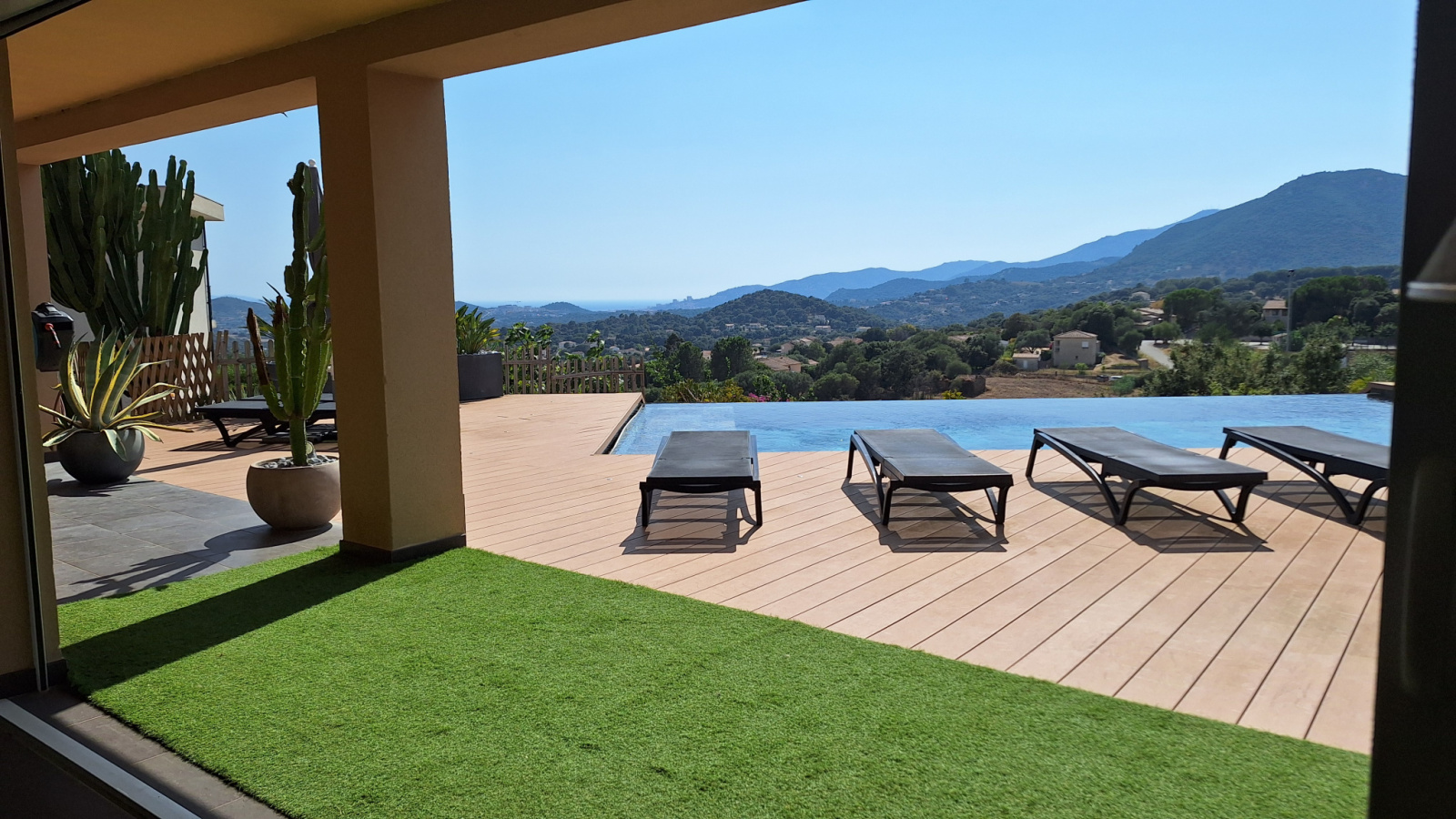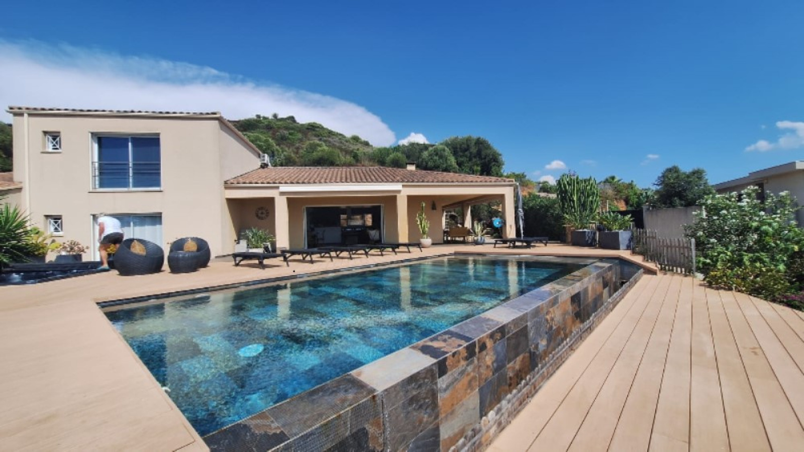 Agréable terrasse de 200m2 avec piscine à débordement 10 X 4.
