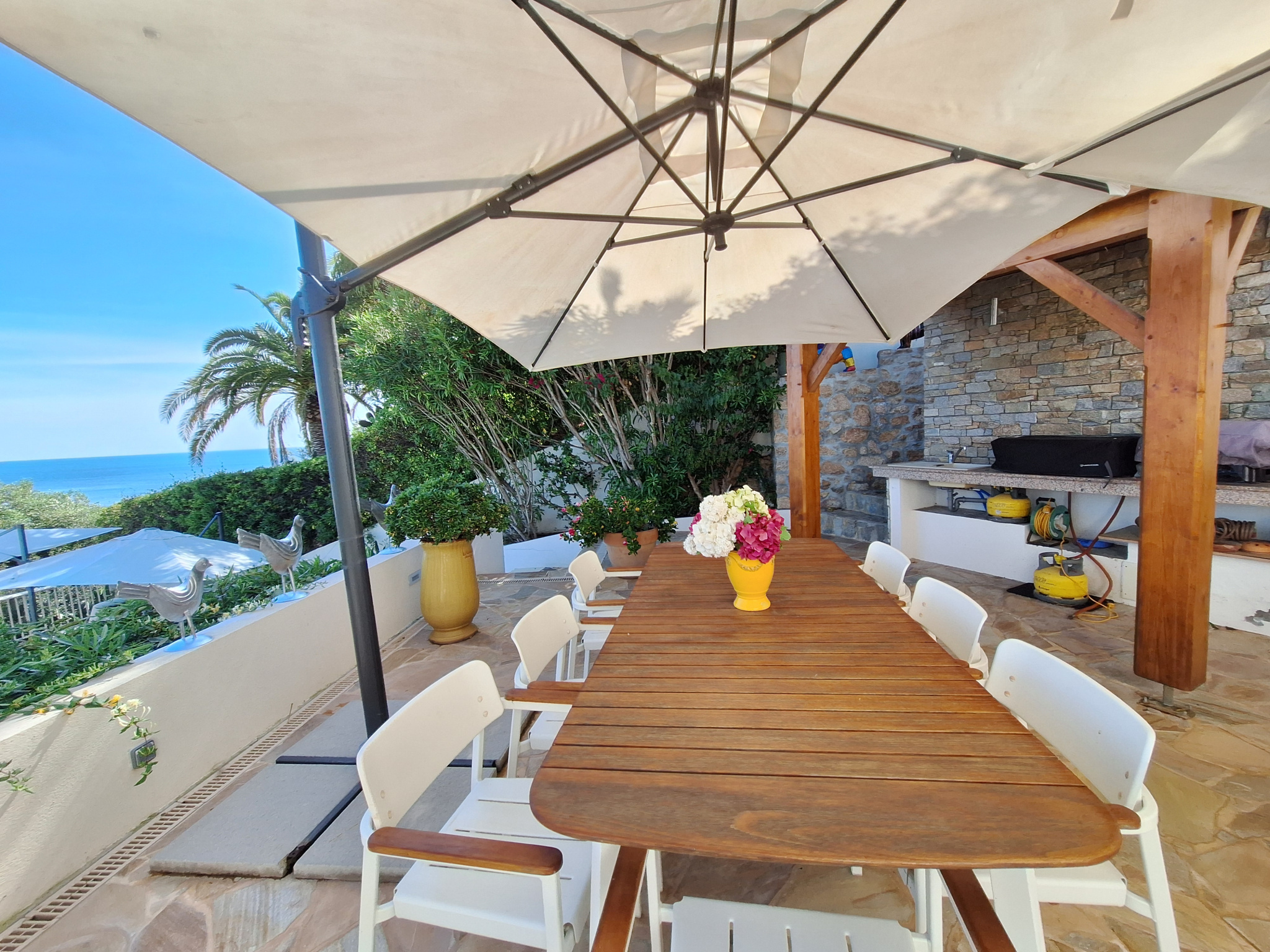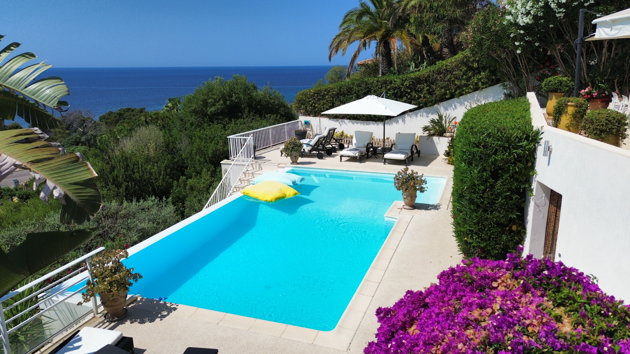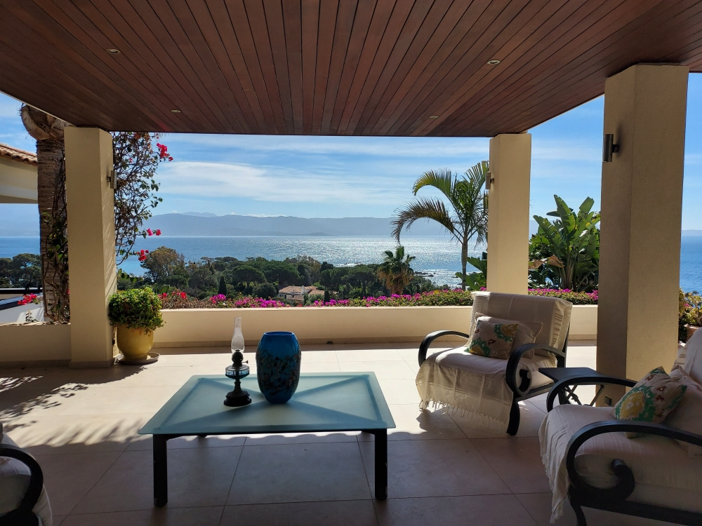 Sur la célèbre Route des Iles Sanguinaires, venez découvrir cette magnifique villa de style Néo-Colonial, admirablement dessinée par un architecte local. Les volumes épousent parfaitement la topographie particulière de ce terrain exposé plein Sud, avec une vue dominante et panoramique sur le Golfe d'AJACCIO. Disposant de 280 m2 Carrez avec un séjour ouvert sur de belles terrasses couvertes face à la mer, une cuisine équipée, 1 bureau et 6 chambres vue mer, 4 salles de bains et 4 W.C. Avec les espaces aménagés extérieurs : terrasses couvertes, kiosque, cuisine d'été, vous disposerez véritablement de 420 m2 de pièces à vivre. Les extérieurs sont un ravissement parcours au milieu d'essences locales et tropicales jusqu'à la piscine à débordement de 10m x 5m avec sa plage sans vis-à-vis, garantissant parfaitement l'intimité familiale. Les prestations et équipements sont haut de gamme : pool-house, douche et W.C extérieurs, garage, forage, portail motorisé, alarme, double-vitrage, volets roulants électriques, climatisation réversible, pompe à chaleur ... . Dans une résidence de standing, gardiennée et sécurisée, à seulement 300m de la célèbre plage Marinella... .