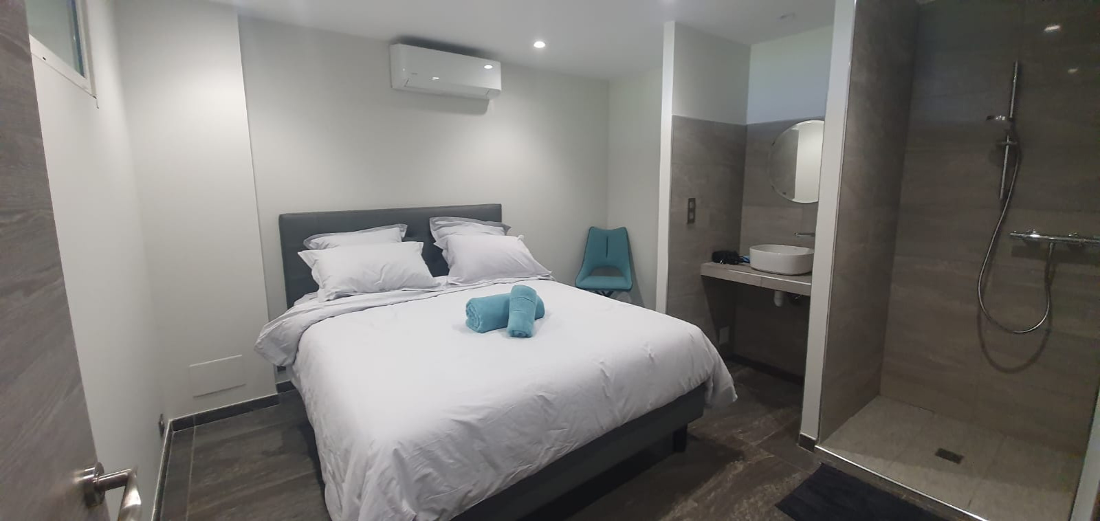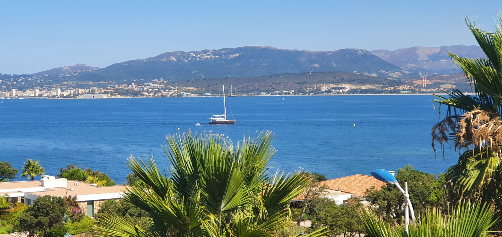 à l'abri des regards, avec vue sur mer, cet appartement se compose d'une pièce de vie avec cuisine us équipée, donnant sur terrasse, 2 chambres salle d'eau et wc, clim et place de parking,