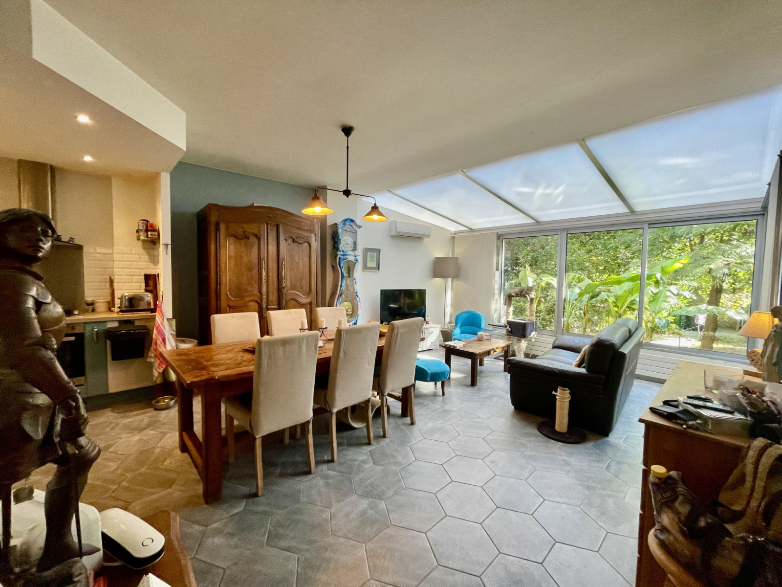 A l'extérieur vous profiterez d'une belle terrasse et d'un grand jardin piscinable ainsi que d'une dépendance de 17 m2 environ.