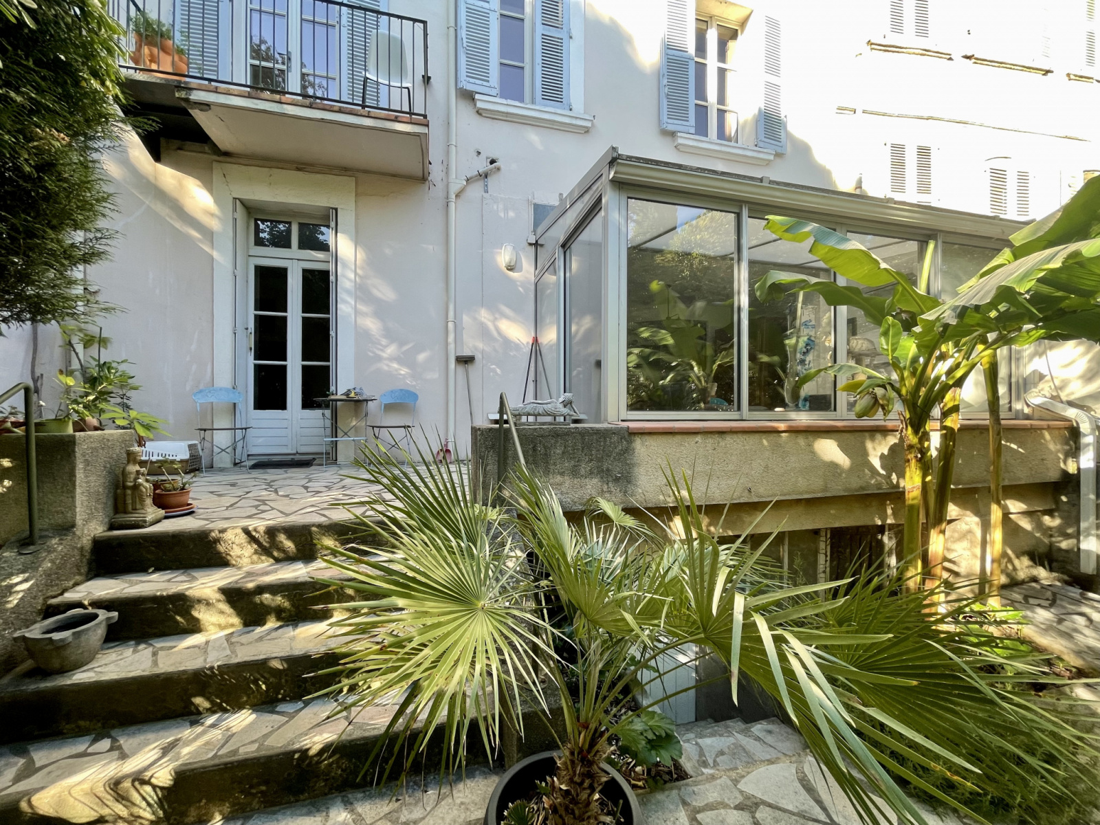 Situé dans un quartier calme dans une petite co-propriété de 3 co-propriétaires, jolie appartement rénové en rez-de-jardin se composant d'une pièce à vivre avec cuisine américaine entièrement équipée ouvrant sur le jardin grâce à de larges baies vitrées style véranda (possibilité d'agrandissement), 2 chambres avec chacune sa propre salle d'eau, 1 wc, 1 buanderie, 1 grande cave souterraine privative de + de 60 m2.